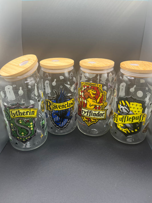 Gryffindor Harry Potter House 16 oz Glass Cup with Bamboo Lid & Glass Straw